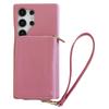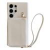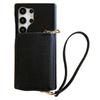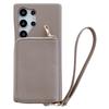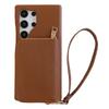 For Samsung Galaxy S23 Ultra Case Zipper Card Slots PU Leather Phone Back Cover with Wrist Strap
