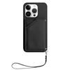 For iPhone 15 Pro Case Multi-Functional Card Slots Leather Back Cover with Wrist Strap