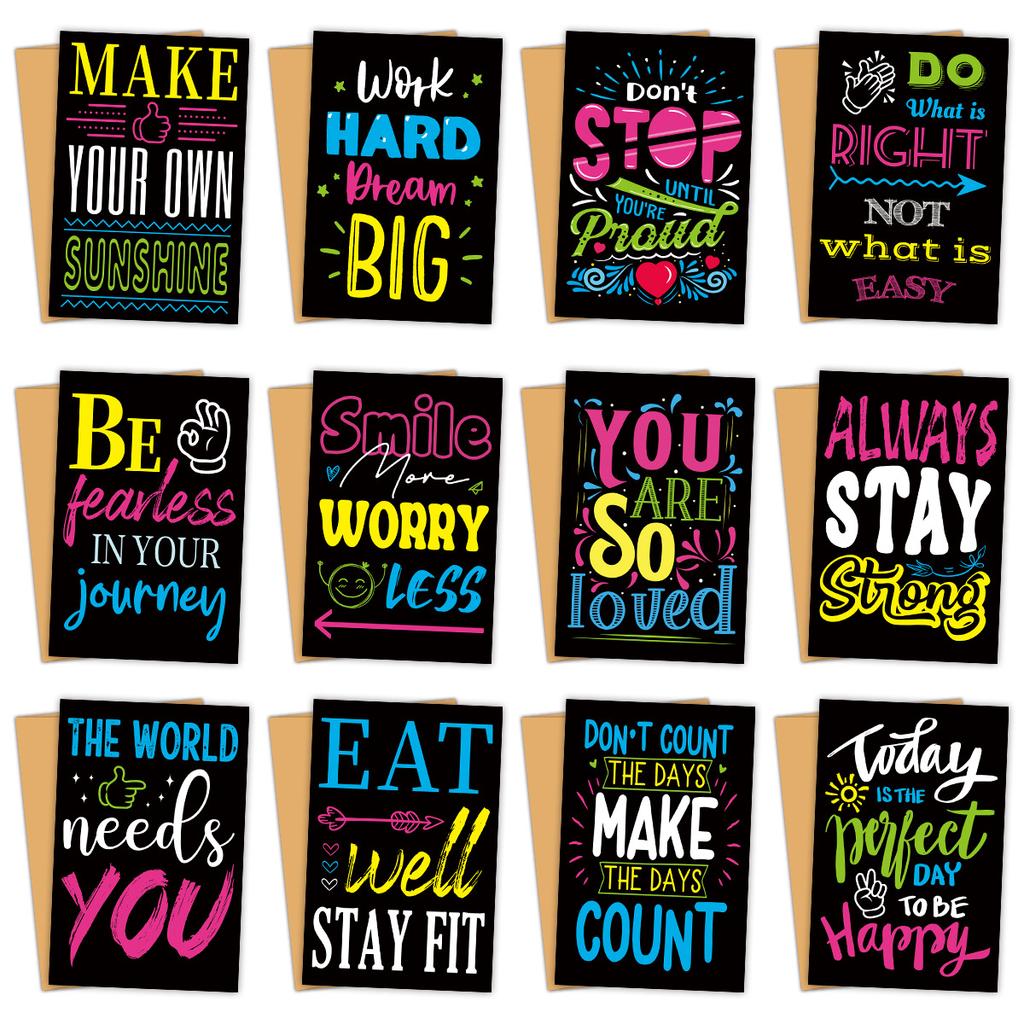 12Pcs Watercolor Doodle Inspirational Greeting Cards Set with Envelopes, Motivational Thank You Card, Encouragement Postcard