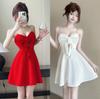 New small French red suspender dress summer casual women's clothing royal sister style temperament waist short skirt