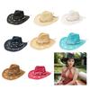 Erkek Kadın İçin Hasır Kovboy Şapkası Şekillendirilebilir Kenarlı Batı Kovboy Şapkası Dokuma Delikli Plaj Kıyı Güneş Şapkası