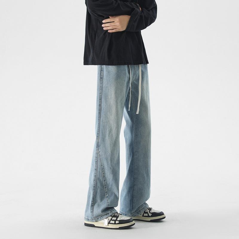 New Autumn Elastic Waist Slightly Flared Jeans Men's Design Wide-leg Pants