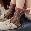 Women's Autumn Vintage Fashion Collage Color Check Grain Tube Stack Socks