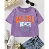 Malibu Plajı ABD Şehir Harf Baskılı Kadın Yıkanmış Tişört İnce Pamuklu Giyim Bisiklet Yaka Sokak Giyim Tişörtleri