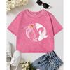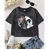 Japanese Koi Harajuku Illustration Print Women Washed Crop T Shirt Cotton Hip Hop Top T-Shirts O-Neck Slim Streetwear