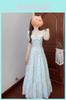 Blue floral suspender dress, unique and beautiful vacation style, sweet summer atmosphere, small skirt