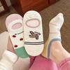 Spring and Summer Thin Women's Socks with Embroidered Letters, Cartoon Smiling Faces, Invisible and Non-dropping Heels