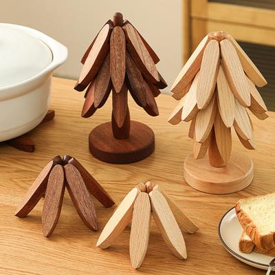 Ağaç Şekli Isı Altlığı Bambu Amerikan Servis Katlanabilir Mutfak Matı Kaymaz Sıcak Tencereler Bardaklar İçin Masa Üstü Koruyucu