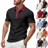 Men's Solid Color Button Stripe Lapel Short Sleeve Top Men's Casual Fashion Shirt