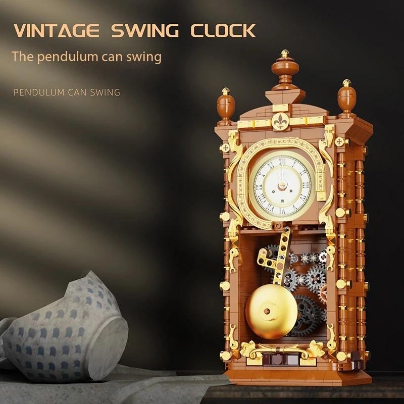 Retro Building Blocks Swing Pendulum Clock Construction Brick Set DIY Construction Toy for Kids Adults Classic Creative Gift
