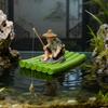 Natural Creative Design: Featuring a whimsical bamboo raft and fishing elderly figures, this figurine exudes a natural artistic flair. The intricate design adds a touch of creativity to your courtyard or fish tank setting.
