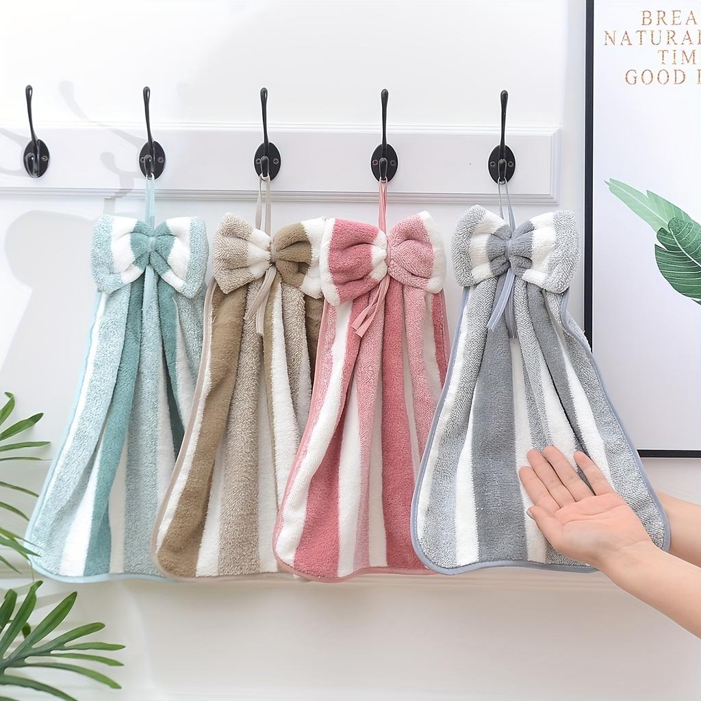 3pcs High Absorbency Wide Strip Hand Towels with Bow Tie, Modern Coral Velvet Quick-Dry, Absorbent Soft Polyester & Nylon, Knitted Superfine Fiber