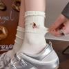 Cute Cartoon Embroidery Mid-Calf Ruffle Socks for Women - Cotton Casual Spring/Autumn Wear
