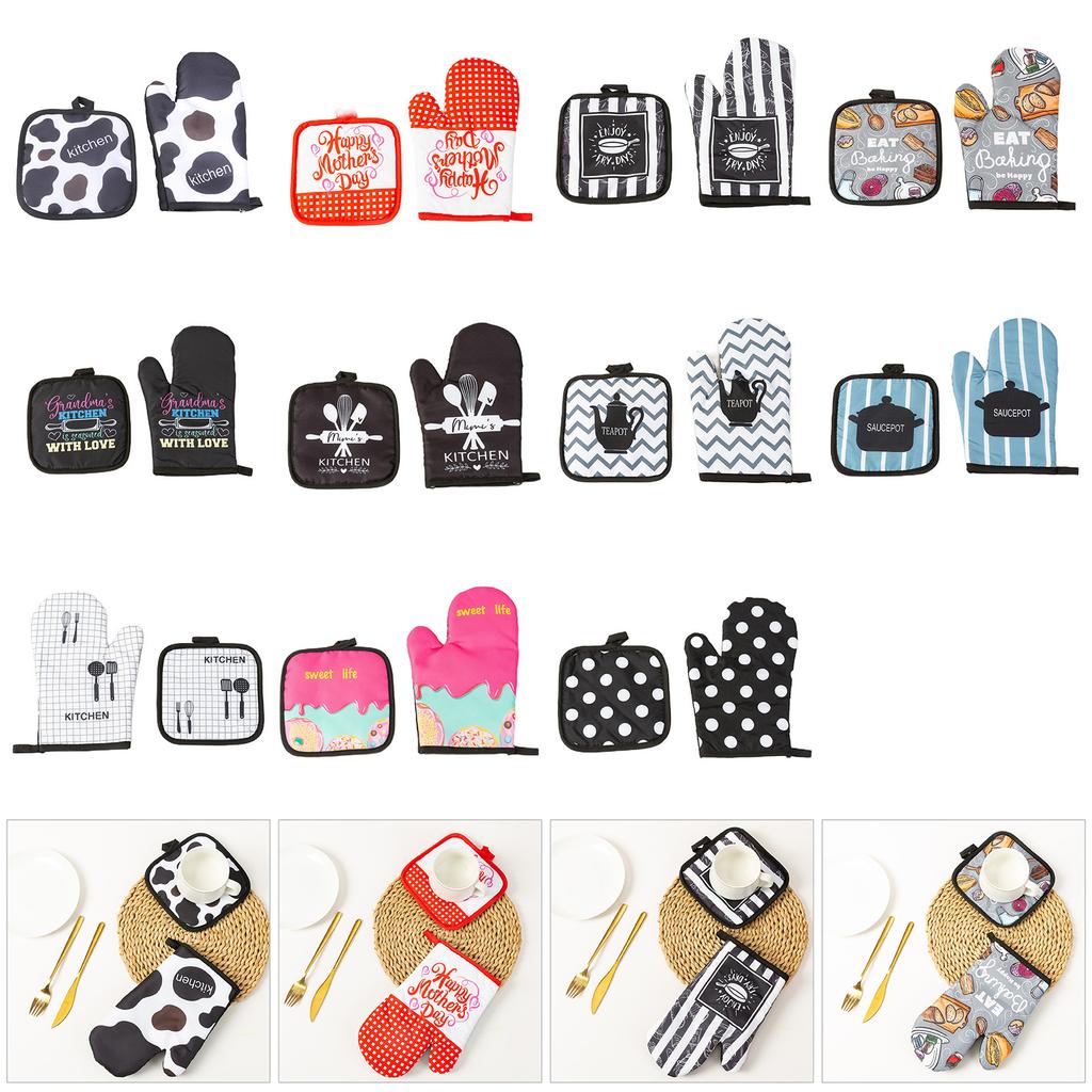 Kitchen Microwave Insulation Gloves with Mat Heat Resistant Baking Gloves Cooking Baking Gloves Oven Mitts Enduring