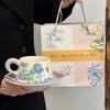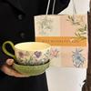 Retro Contrasting Iris Ceramic Coffee Cup Saucer Set Afternoon Tea Latte Cup Birthday Gift Souvenir Gift Box