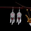 Ethnic Feather Tassel Dangle Earrings - Imitation Miao Silver Style, Popular Tourist Item, Cute Bean Design.