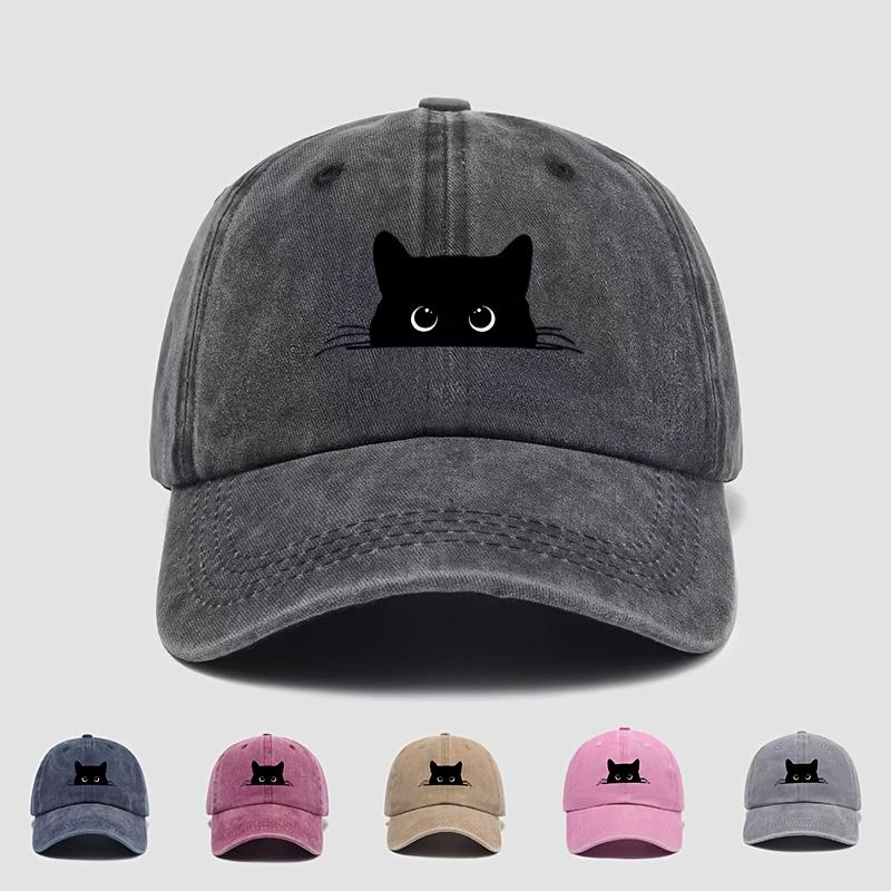 1 adet, Sevimli Kedi Baskılı Yıkanmış Beyzbol Şapkası, Modaya Uygun Dört Mevsim Dış Mekan Yürüyüş Parti Şapkası, Tokalı Hafif Polyester