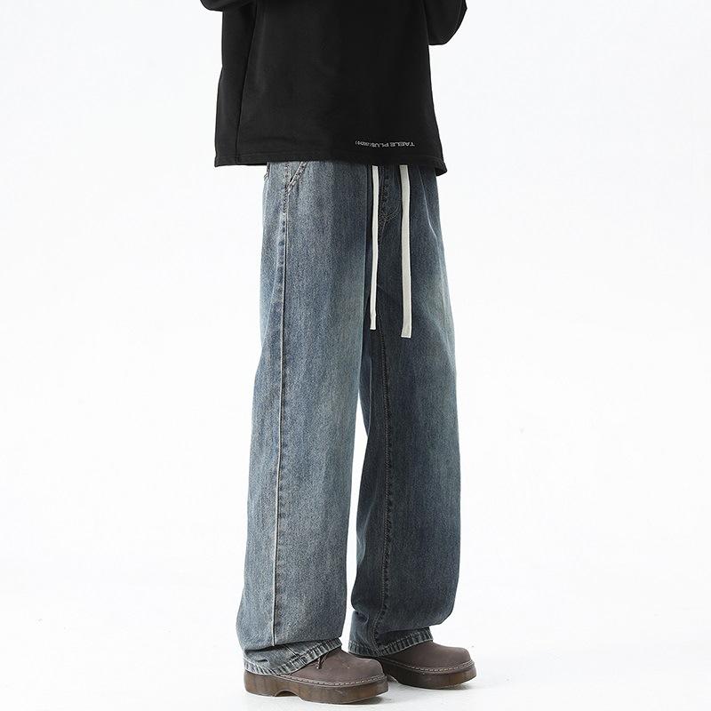 New Spring Style Full Elastic Drawstring Waist-headed Lysel Jeans Men's High Street Wide-leg Floor Pants