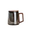 Glass Tea Water Separation Tea Ceremony Cup with Lid Large Capacity Smoke Gray Wooden Handle Office Cup Home Men's Gift Brewing Tea Cup