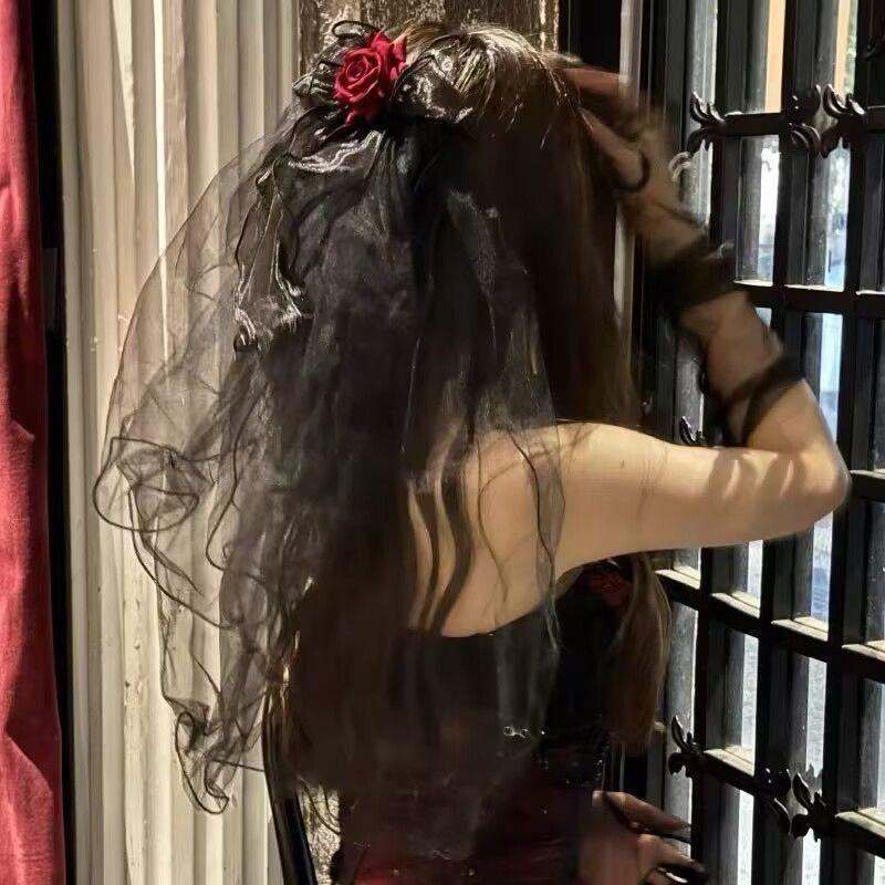 Gothic Runaway Bride Veil - Halloween Dark Princess Headpiece with Bow - Victorian Spooky Accessory
