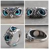 Creative Blue Eye Owl Ring Retro Unique Cute Personality Animal Ring Opening Adjustable Punk Rock Vintage Fashion Hip Hop Ring