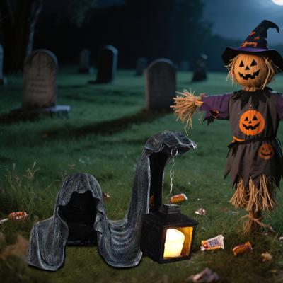 Ölüm Meleği Heykeli Gotik Siyah Cübbeli Gizemli Adam Süs Eşyası Korkutucu Fener Tutuyor Ölüm Meleği Heykeli Cadılar Bayramı İç Mekan Dış Mekan Dekorasyonu İçin