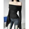 2KWEIRD Y2k Aesthetic Women Translucence Tee Shirts Slash Neck Long Sleeve Solid Casual T-Shirts Vintage Off Shoulder Sexy Cute Tshirts