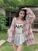 American Style Fashion Sping Autumn New Shirts Coats Women Lapel Plaid Single Breasted Youth Casual Long Sleeve Cardigan Jackets