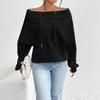 Women's Loose Casual Through Drawstring Off-the-shoulder Line Neck Top