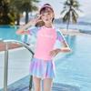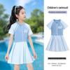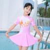 Introducing a stylish and practical swimming outfit designed specifically for young girls, perfect for a day at the beach or the pool. This short-sleeved swimsuit combines comfort and protection, featuring a split skirt design that allows for easy movement. Made from high-quality polyester, it offers excellent durability and resistance to fading, ensuring it can withstand the sun, sand, and surf. Additionally, its breathable material provides effective sun protection, making it an ideal choice for outdoor water activities. This swimsuit ensures your little one stays comfortable and covered while enjoying summer fun.