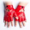 Nightclub Pole Dance Performance Gloves Female Patent Leather Half Fingered Star Dress PU Imitation Leather Peach Heart Rivet Street Dance