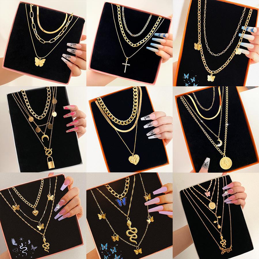 Stacked Wind Butterfly Necklace Female Rose Letter European and American Neck Chain Creative Snake Necklace