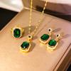 Classic Women's Three Piece Zircon Set Statement: Jadeite Ring, Fashion Green Zircon Ring, Earrings, Necklace, Wedding Zircon