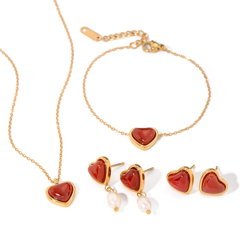 Youthway Romantic Stainless Steel Red Onyx Love Bracelet Necklace Earring Set Valentine's Day Zircon Gift for Women