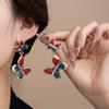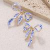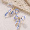 Literary Retro Fashion Enamel Imitation Blue And White Porcelain Drip Oil Bow Pendant Earrings For Women