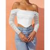 Yuoku Dantel Kısa Uzun File Dantel Ağ Şeffaf Uzun Tip Bluz, Uzunluk, Şeffaf, Kol, Üst, Tişört, Göbek Açık, Üst, Dantel, Kol, Şeffaf,
