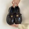 Sheepskin~ Genuine leather women's camellia with one pedal, thick-soled retro lazy with skirt and small leather shoes
