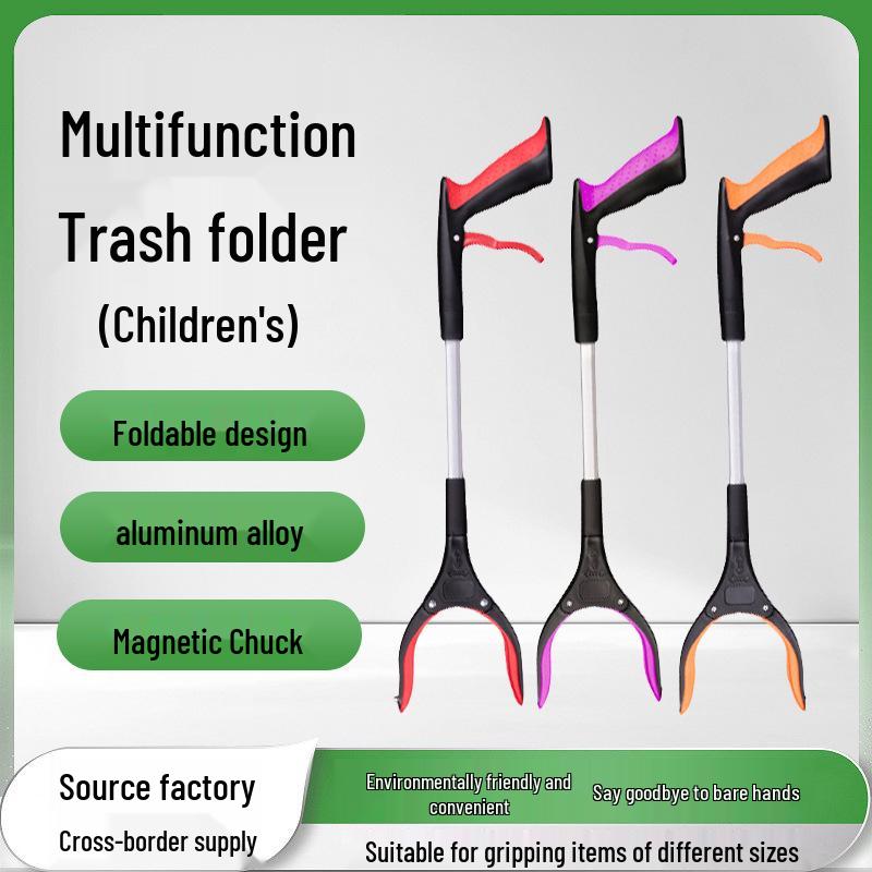 Foldable Long-Handled Aluminum Trash Picker for School Children