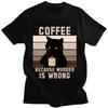 Men's Street Wear Cat Lover Funny Coffee Because Murder Print T-shirt Short Sleeve O-neck Streetwear Summer T Shirts Men