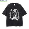 Korn Follow The Leader 20Th Anniversary Washed T Shirt Metal Gothic Rock Band T Shirts Men Vintage T-shirt Streetwear