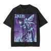Japanese Anime Serial Experiments Lain Vintage Washed T Shirt Manga Iwakura Girl Sci Fi T-shirts Men 100% Cotton Casual T Shirt