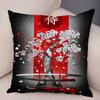 Japanese Style Ink Cushion Cover for Sofa Home Car Decor Beautiful Scenery Cat Girl Pillowcase Polyester Pillow Case 45x45cm
