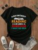 A Day Without Reading Letter Cotton T-Shirt Short Sleeve Round Neck Women 2d Print Tops