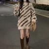 Plus-Size Women's Loose and Lazy Style Color-Block Zebra-Print Knit Pullover Sweater with Design Sense for Autumn