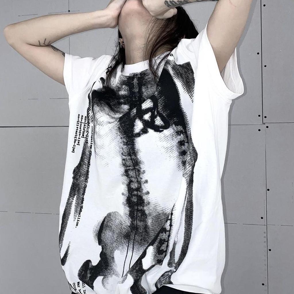 Yaz Kadın Tişörtleri Sokak Giyim BF Harajuku Tişörtler Bol Kesim Üstler Moda Günlük Kurukafa Baskılı Kore Y2k Tişört