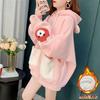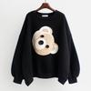 Women Pure Cotton Cute Bear Pullover Autumn Winter New Casual Plush Loose Asymmetric Hooded Sweatshirt Female Top
