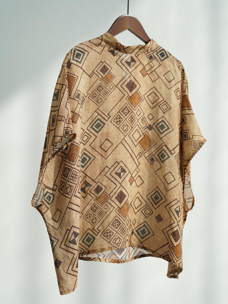 Johnature Women Vintage Plaid T-Shirts Bat Sleeve Summer Loose Female Soft Chinese Style Belt T-Shirts