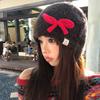 Autumn and winter hats women's big head circumference bow headgear fashion versatile ear protection warm knitted wool hat