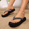 2024 New Women's Slippers Medium Heel Thick Sole Solid Color Slippers Large Size Rhinestone Decorated Flip-Toe Women's Slippers