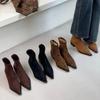 Women Pointed Toe Ankle Boots High Heels Leather Shoes Winter Suede Shoes Woman 2025 Trend Fad Elegant Office Chunky Botas Mujer